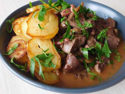 Le sauté de foie est un plat raffiné et savoureux, mettant en valeur des morceaux de foie de canard de bœuf de mouton ou de poulet.